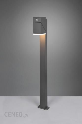 Nowoczesna lampa stojąca 1 punktowa z wbudowanym źródłem światła LED osłoniętym białym tworzywem sztucznym. Możliwość regulacji położenia źródła światła. Elementy metalowe lampy wykonane z barwionego aluminium w kolorze antracytu. Ta oprawa włącza się automatycznie za pomocą zintegrowanego czujnika ruchu. Możliwość regulacji położenia źródła światła. – wykrywanie ruchu: max. 6 m. strefa wykrywania ruchu: 100 stopni, – regulowany czas świecenia: 8 s – 5 min.