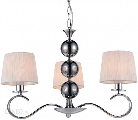 Indeks: 33-21618 Charakterystyka:- Zasilanie: ~230V- Źródło światła: żarówka E14, 3x40W- Możliwość zastosowania żarówek energooszczędnych lub LED- Materiał: metal, płótno- Kolor: chrom, białe abażury Wymiary:- Wysokość: 110 cm- Średnica: 60 cm