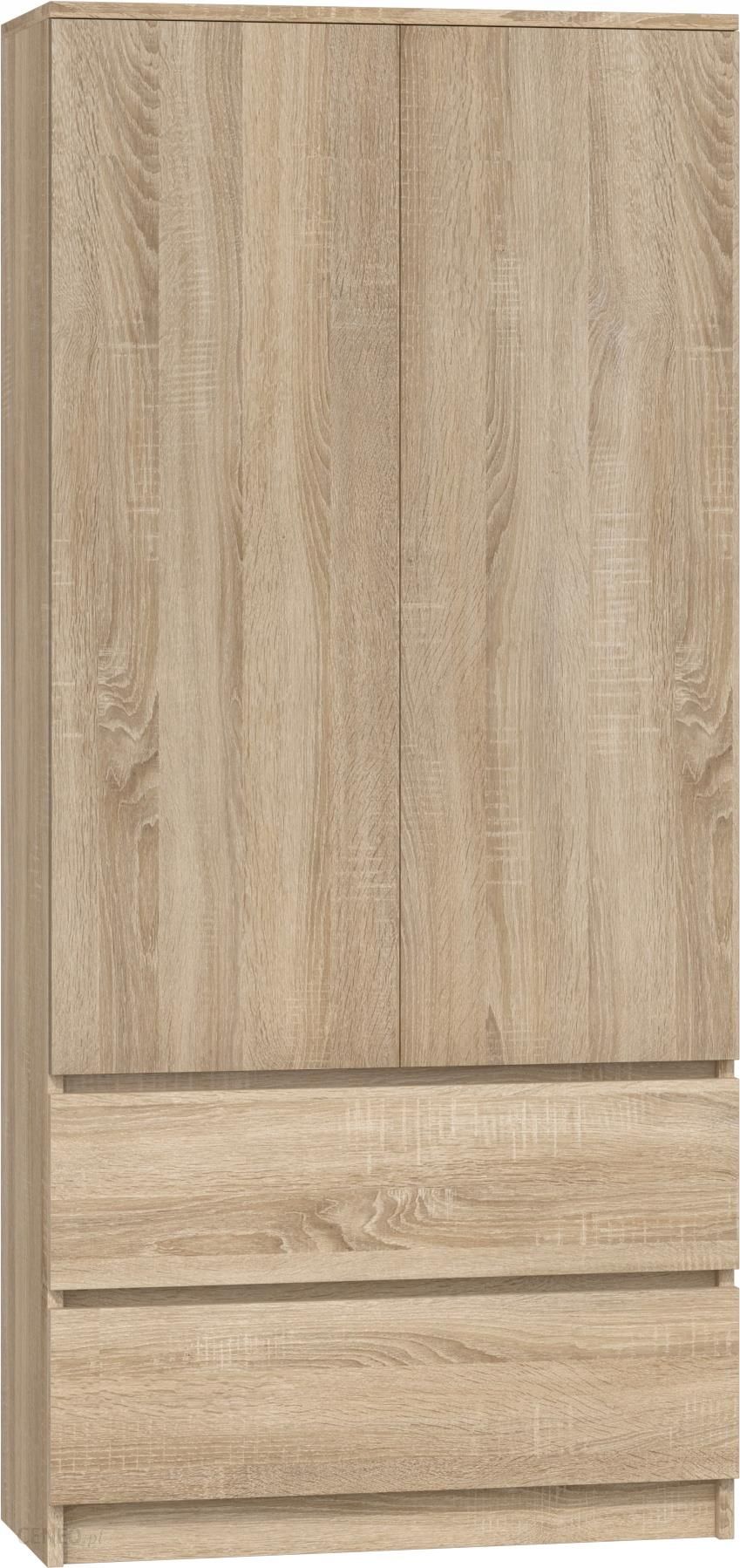 WYMIARY: Głębokość: 50 cm Szerokość: 90 cm Wysokość: 180 cm SZAFA MALWA SS-90 – Dąb Sonoma IDEALNA DO BIURA LUB SYPIALNI System TIP-ON drzwi szafy – otwierają się po delikatnym naciśnięciu frontu za pomocą mechanicznego wspomagania otwierania. Możliwość montażu półek z lewej bądź prawej strony. Krawędzie oklejone obrzeżem ABS Miejsce na powieszenie ubrań 4 półki 2 szuflady Lekka prosta forma Minimalistyczna konstrukcja Polski producent Cenią sobie państwo nowoczesny design i funkcjonalność? Szafa SS-90 to praktyczny mebel, który znajdzie swoje miejsce zarówno w sypialni, gdzie posiadamy garderoby, ale również w biurze czy pracowni, gdzie dokumenty musza mieć swoje miejsce oraz można schować ubranie wierzchnie. Cechy charakterystyczne tego produktu to przede wszystkim solidne wykonanie oraz nowoczesny wygląd. Mebel wykonany z najwyższej jakości płyty laminowanej odpornej na zarysowania i wilgoć wraz z wzmocnieniami obrzeży ABS. Boki szafki są jednolite bez otworów na zewnątrz, podnosi to estetykę produktu. MATERIAŁ: Korpus i fronty płyta wiórowa laminowana o grubości 16mm. Obrzeża wykończone tworzywem PCV (charakteryzującym się dużą wytrzymałością mechaniczną i chemiczną) Szuflady na prowadnicach rolkowych to gwarancja wygodnego, a przede wszystkim bezpiecznego użytkowania. WYMIARY: Głębokość: 50 cm Szerokość: 90 cm Wysokość: 180 cm TIP-ON drzwi bez uchwytów można otworzyć bez trudu poprzez lekkie naciśnięcie. Drzwi uchylają się do pozycji wygodnej dla użytkownika do dalszego otwarcia. By je zamknąć wystarczy lekko docisnąć front. Użytkowanie: Powierzchnię mebla czyścić przy pomocy miękkiej szmatki. Unikać stosowania silnie działających środków chemicznych. W opakowaniu: Instrukcja montażu wraz ze wszystkimi potrzebnymi akcesoriami montażowymi. Meble są fabrycznie zapakowane do samodzielnego montażu.